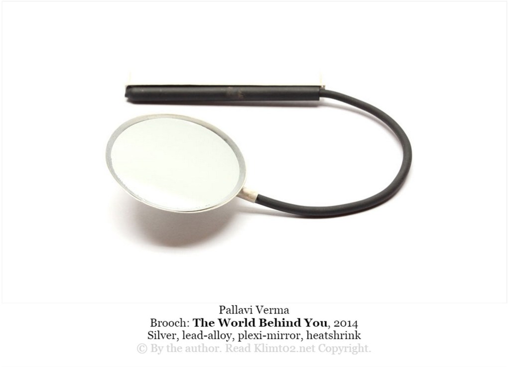 The rare-view mirrors in the vehicles inspired me to make this confrontation. My confrontation is about confronting your surrounding. With your vision you can only see what is ahead of you. My jewel gives you the opportunity to look at what is behind you. Remember the moment when you really wanted to look back but then you just walk ahead.