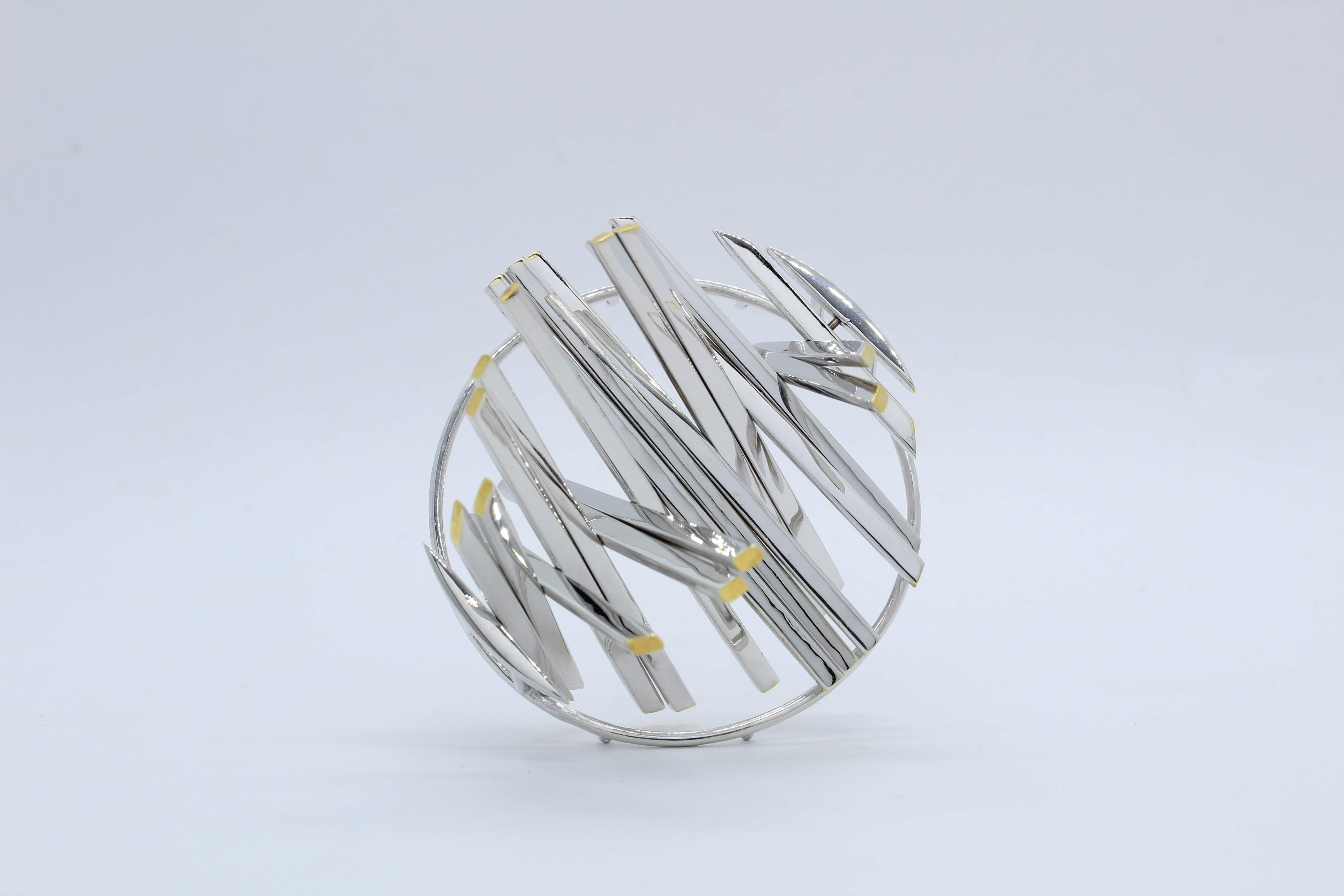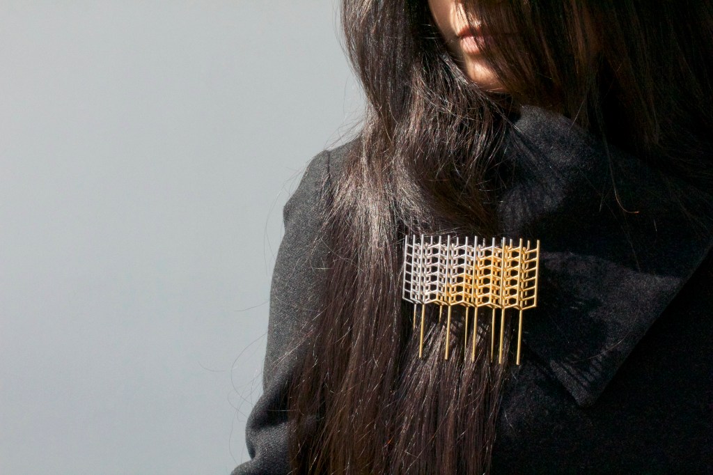 I created this brooch to support the Indian farmer’s on going protest. The form is inspired by wheat. Wheat being the symbol of food, a necessity to humans. The form are like 9 supports/wheat pillars for the 9 march project. The piece is a conversation about standing up for rights & freedom of speech.